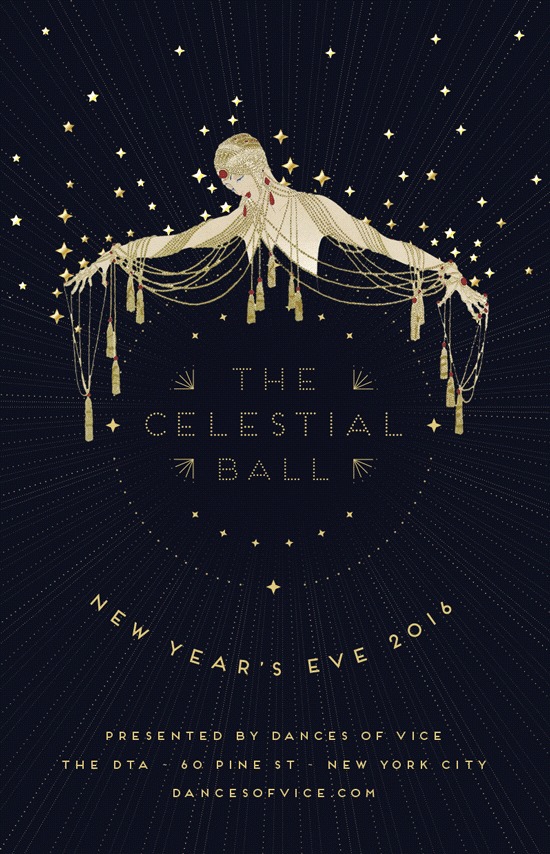 “Mingle with heavenly bodies in a pantheon of gods and goddesses, stars and starlets, and incandescent immortals at the Dances of Vice Celestial Ball for New Year’s Eve 2016.